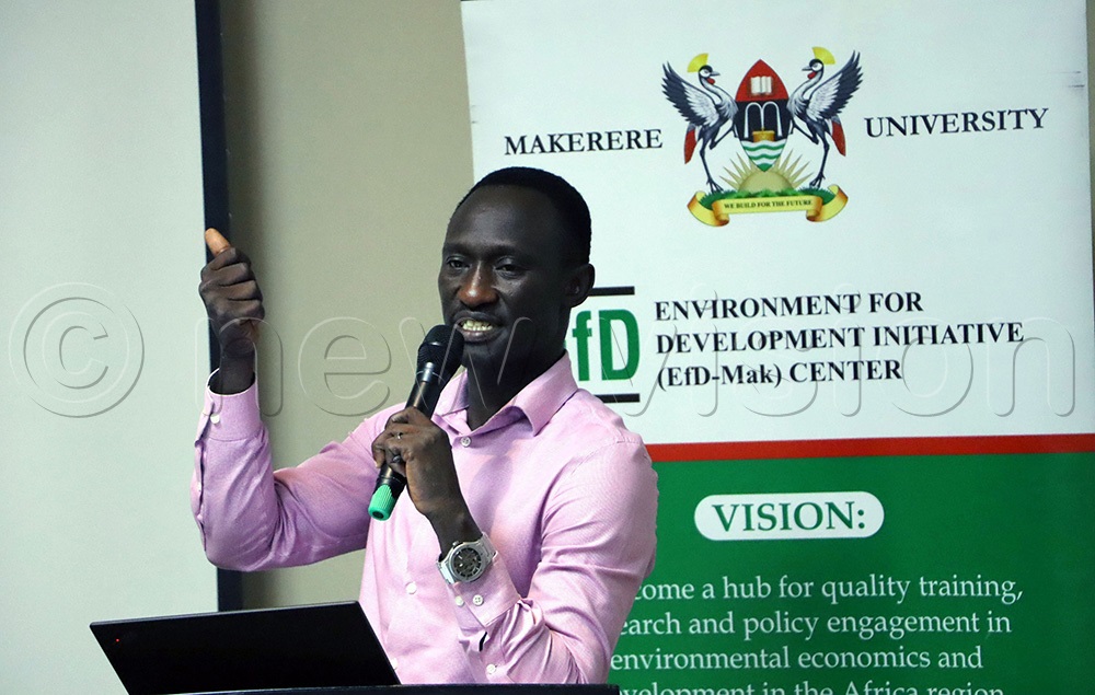 Dr. John Sseruyange from the EfD Mak Centre addressing participants. (Photo by John Odyek)