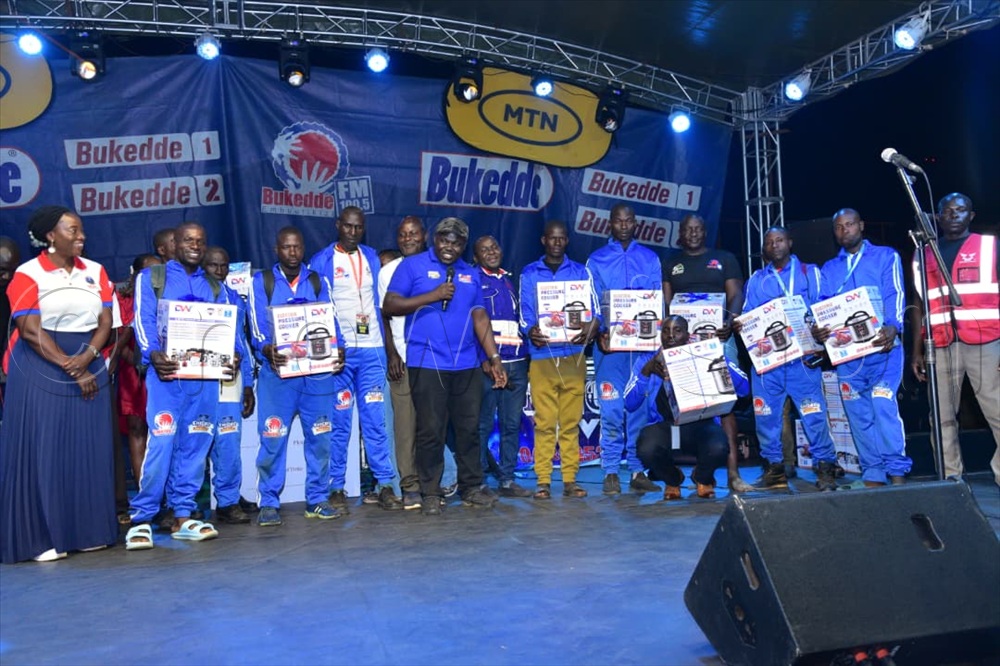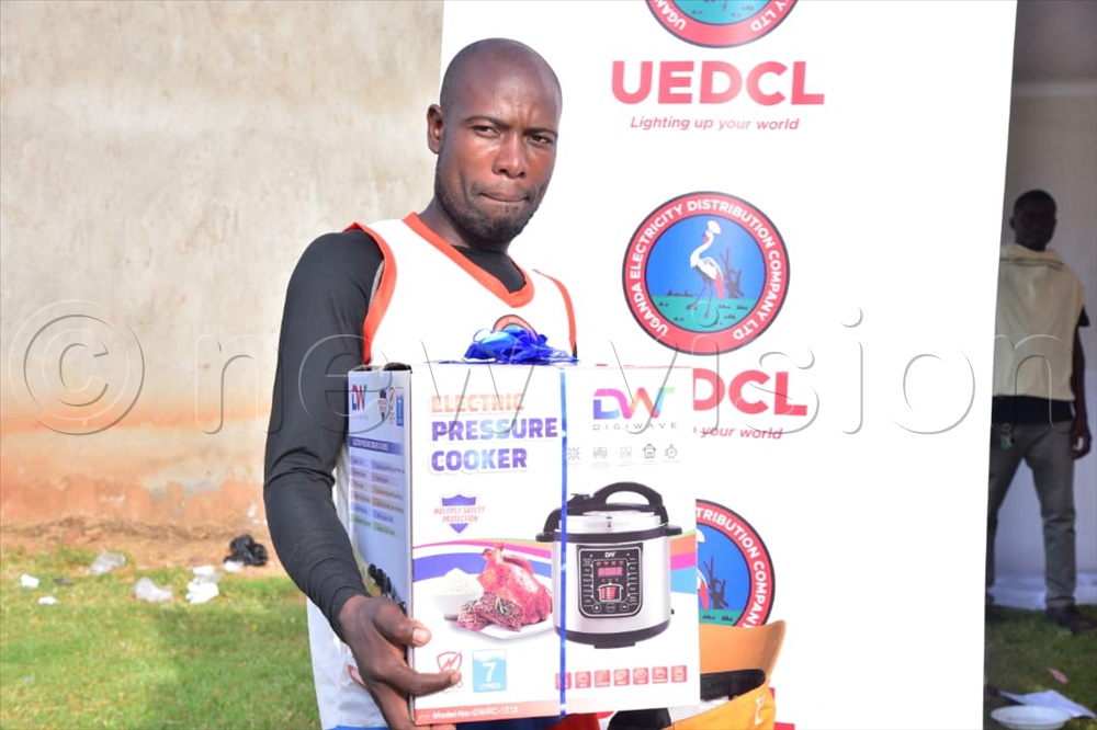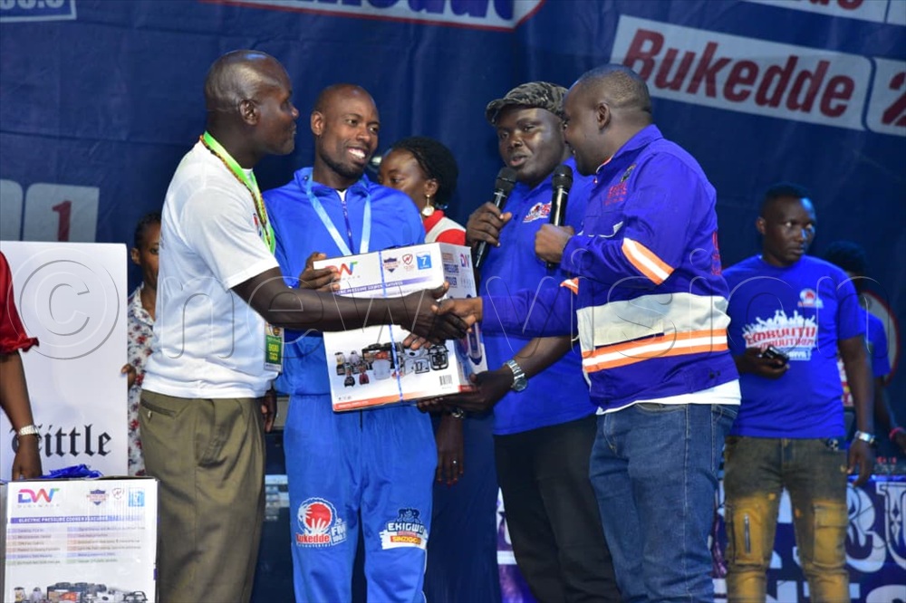 12 competitors of Ekigwo Ggumbya Sinziggu being awarded electrical rice cooker.
