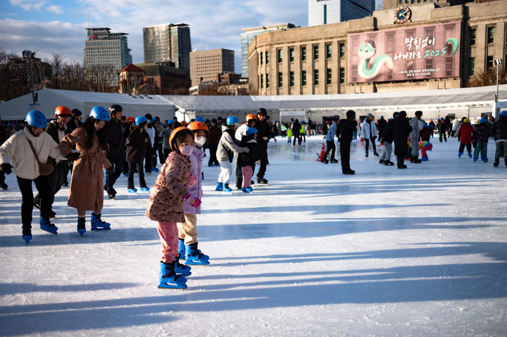 Citizens skate at the rink set up in front of Seoul City Hall in Seoul, South Korea, on January 25, 2025. (AFP)