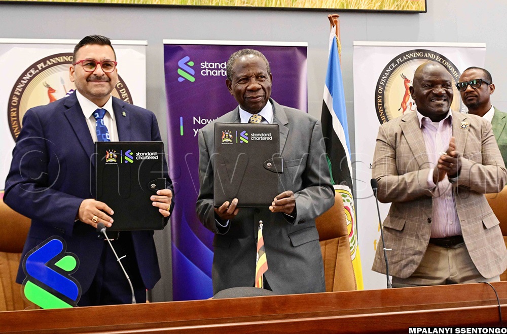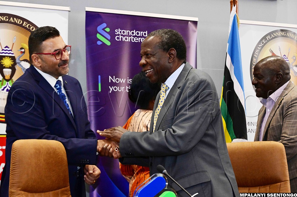 At the signing ceremony, which took place at the Finance Ministry headquarters in Kampala, Kasaija signed on behalf of the Government, while Standard Chartered Bank, Uganda CEO Sanjay Rughani signed on behalf of the bank.