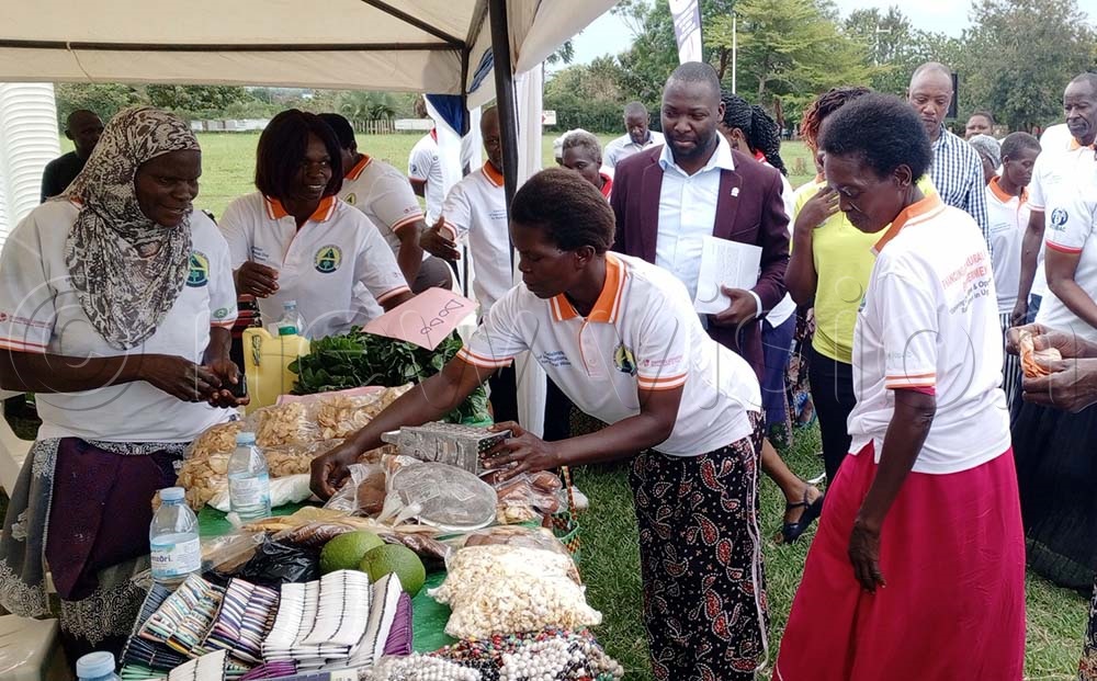 Peter Dhamuzungu, the commissioner in charge of crop production from the agriculture ministry hailed the women for exhibiting some of their final products of value addition. (Credit: Doreen Musingo)