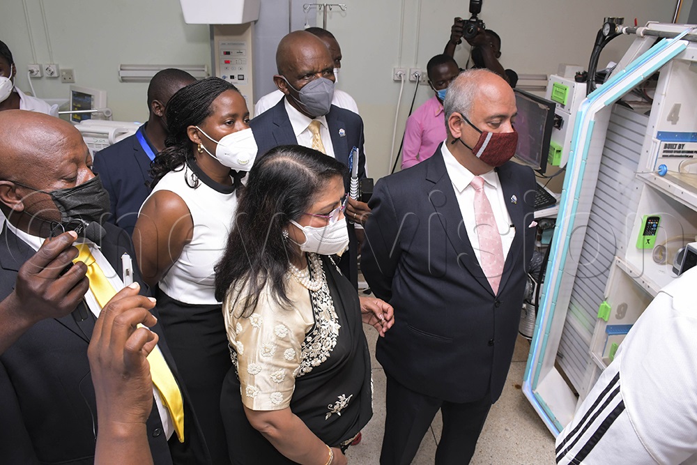 Shekhar Mehta, Rotary International President (left) visiting the Maternal and Child Health center at Kawempe Hospital. (Photo by Ivan Kabuye)