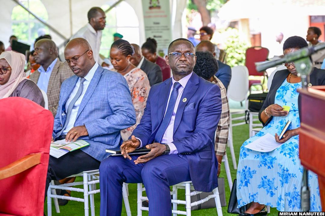 Present are the three education state ministers (Dr John Chrysestom Muyingo for higher education, Dr Joyce Moriku Kaducu for primary education and Peter Ogwang for sports), ministry permanent secretary Dr Kedrace Turyagyenda and other ministry officials, as well as UNEB officials.