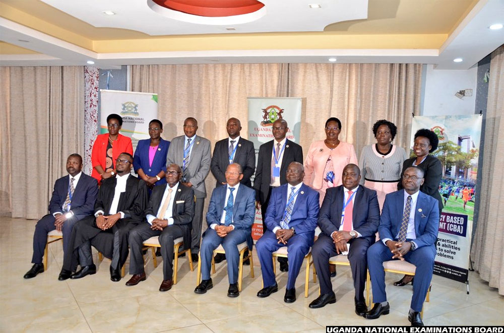 Higher education state minister Dr John Chrysestom Muyingo (seated centre in the picture) represented education minister Mrs Museveni in inaugurating the board, with the First Lady calling for integrity, accountability, and innovation in the management of national examinations.