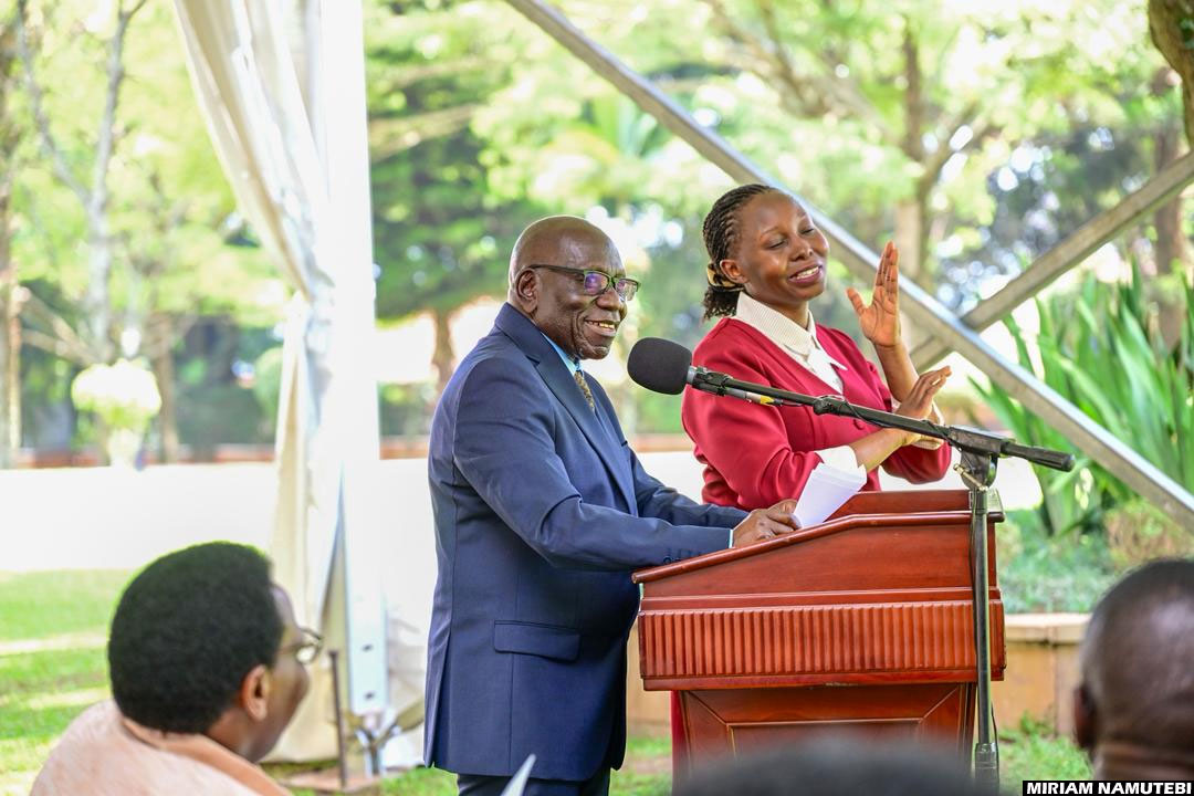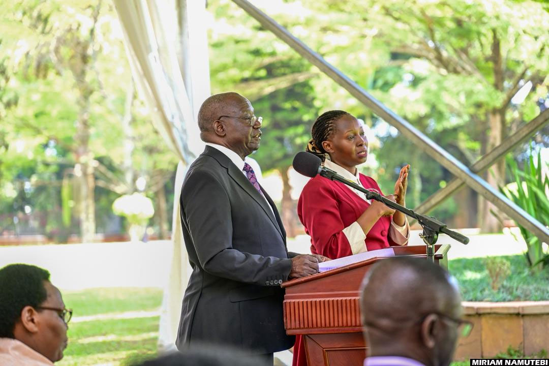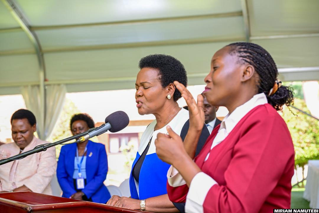 Next up, higher education state minister Dr Muyingo will deliver his comments before inviting the First Lady to address the nation.
