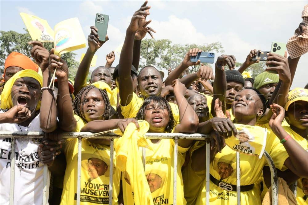 NRM supporters welcome President Yoweri Museveni at Boma Grounds in Hoima city. (Photos by Eddy Ssejjoba and Simon Peter Tumwine)