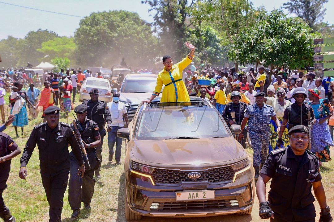 Among then led thousands of her supporters for a massive maiden rally at Bukedea Comprehensive Stadium.
