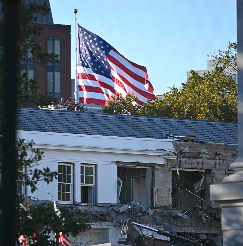 But while Trump said that the East Wing is "completely separate from the White House itself," it is in fact physically joined to the main mansion by a covered colonnade.