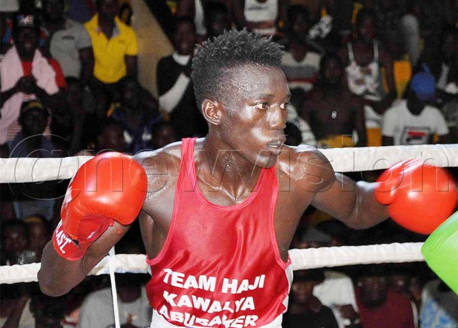 Featherweight Isaac Masembe 'The Stinger' in one of his previous fights.Photo by Fred Kisekka