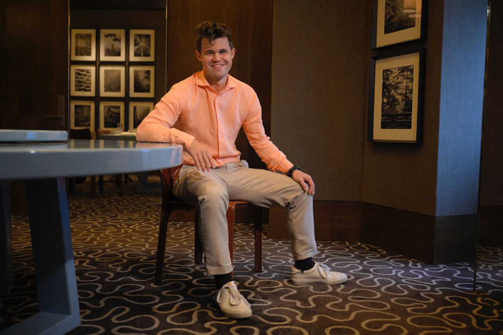 Magnus Carlsen, the Norwegian chess grandmaster who has been world champ five times, pictured after an interview at Summer Pavilion on Nov 24, 2024. (AP)