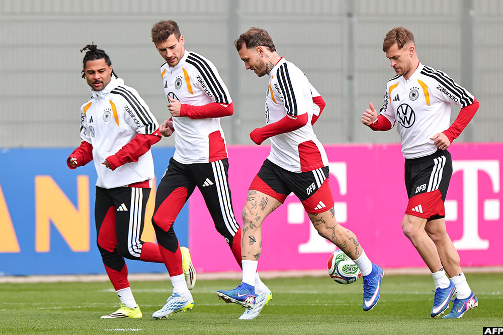 Germany players warm up during a training session before the international friendly football match against Switzerland in Herzogenaurach, southern Germany on March 26, 2026. (AFP)