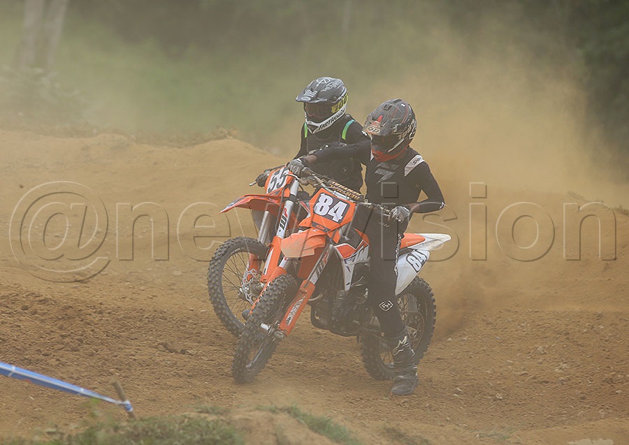 Waleed Omar (84) battles Fortune Sentamu (55) in the Combined MX2 and MX1 class during the FIM CAC. PHOTO: Johnson Were