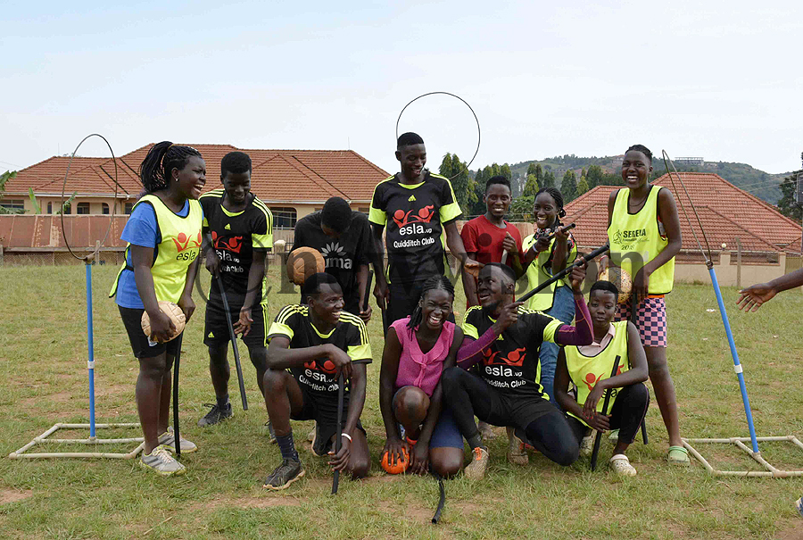 Esla quidditch team posing for a photo at Bunamwaya grounds. Photo By Godiver Asege