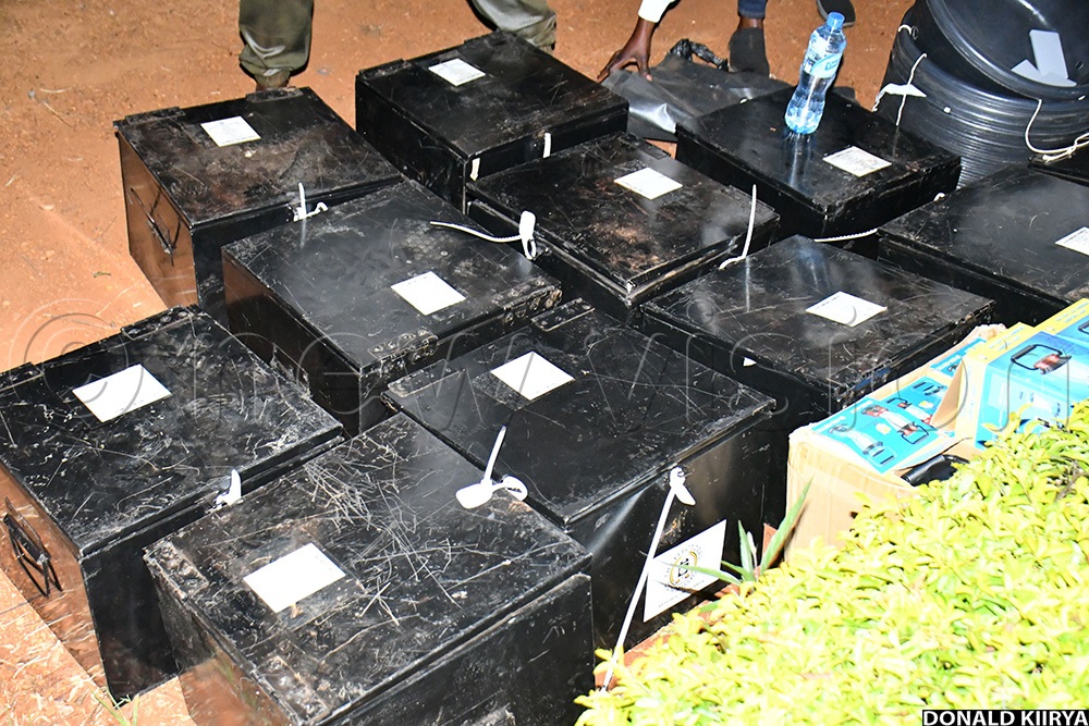 As late as 12:40am, vehicles escorted by UPDF soldiers, Police officers, and prison wardens continued to deliver sealed ballot boxes and copies of declaration forms from polling stations.