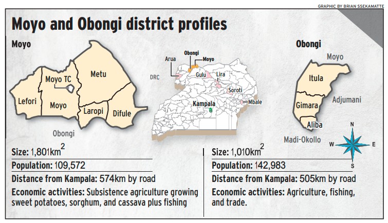 Moyo was created in 1980 from the then Madi district, while Obongi was carved out following legislation by Parliament.
