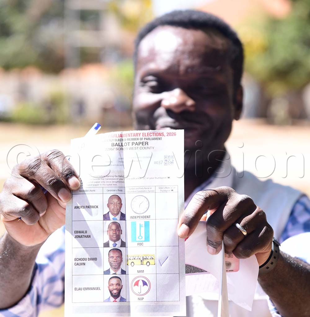 Echodu, who is a candidate for Soroti City West Member of Parliament seat has, today, January 15, 2026, voted at Soroti Municipal SS.