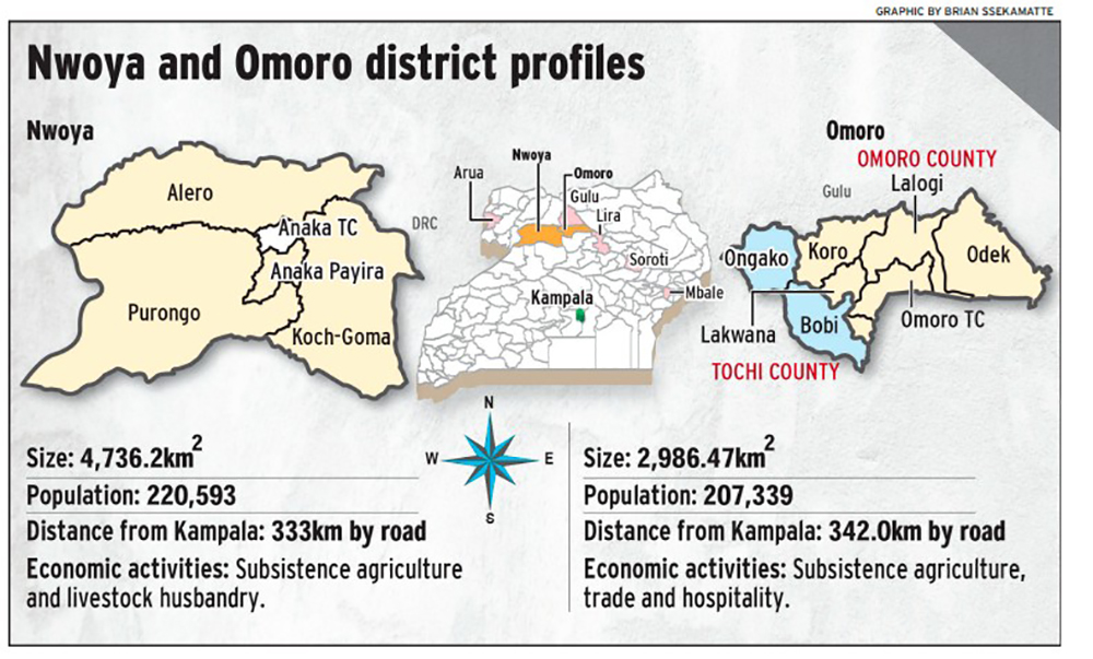 As part of government efforts to take services nearer to the people, Nwoya and Omoro districts were created in 2010 and 2015, respectively, after Parliament endorsed the split of Amuru and Gulu districts.