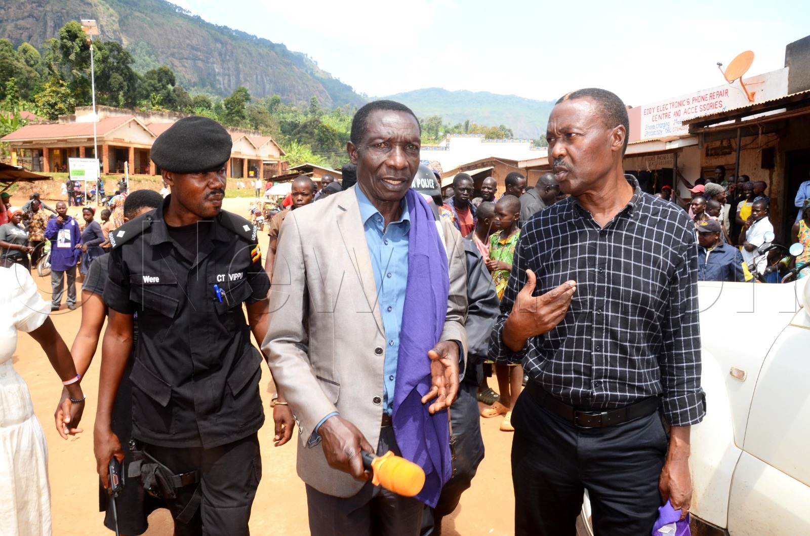 Voters listening in at Muntu's campaign rally.