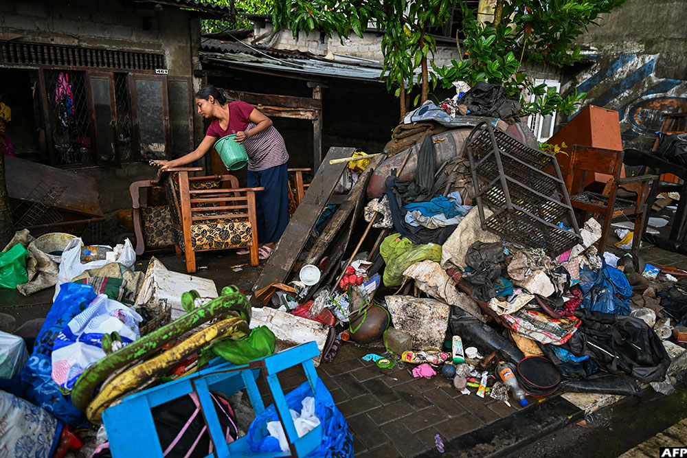 A resident removes remnants of her belongings from an inundated house following flash floods in the aftermath of cyclone Ditwah, in Wellampitiya on the outskirts of Colombo, Sri Lanka on December 5, 2025. (AFP)