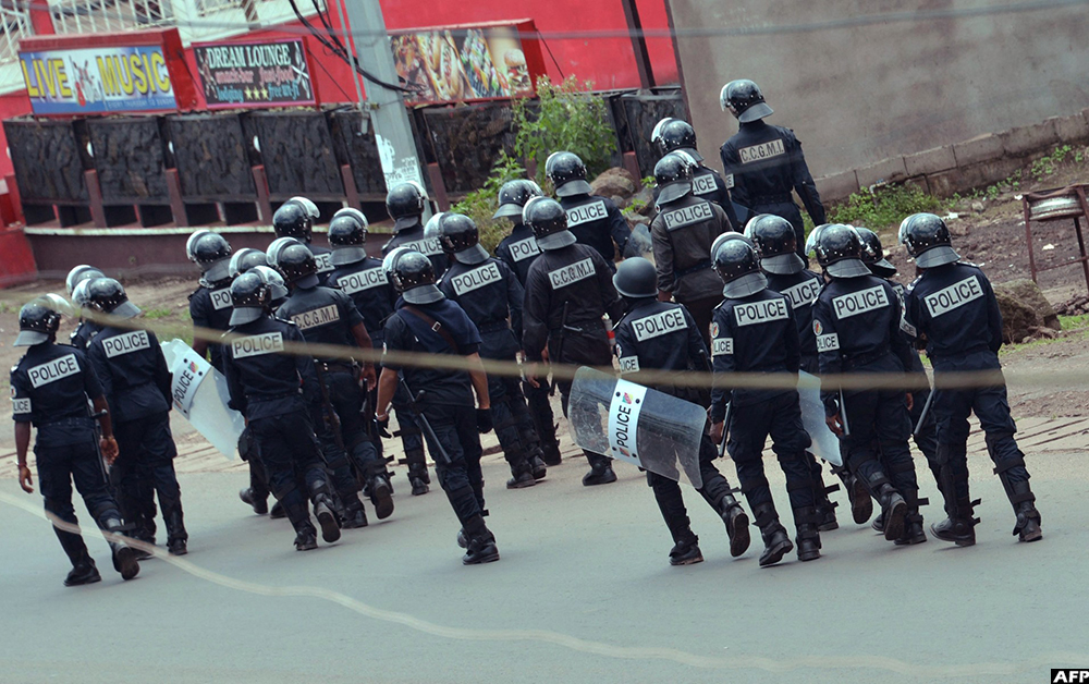 Cameroon police officers walk with riot shields on a street in the administrative quarter of Buea some 60kms west of Douala on October 1, 2017. (AFP)