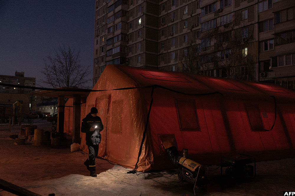 Kyiv authorities have set up hundreds of tents across the city, where people can warm up and get hot food and drink.
