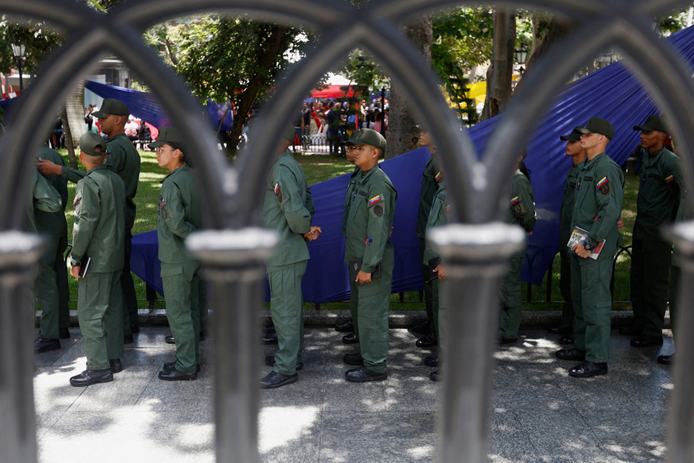 Members of the Bolivarian National Armed Forces line up during a national recruitment campaign launched by the government of President Nicolás Maduro at Plaza Bolívar in Caracas in August 2025. Thousands of people heeded the call to enlist in Venezuela's military forces to bolster ranks in the face of “imperialist aggression” from the United States. (AFP Photo)